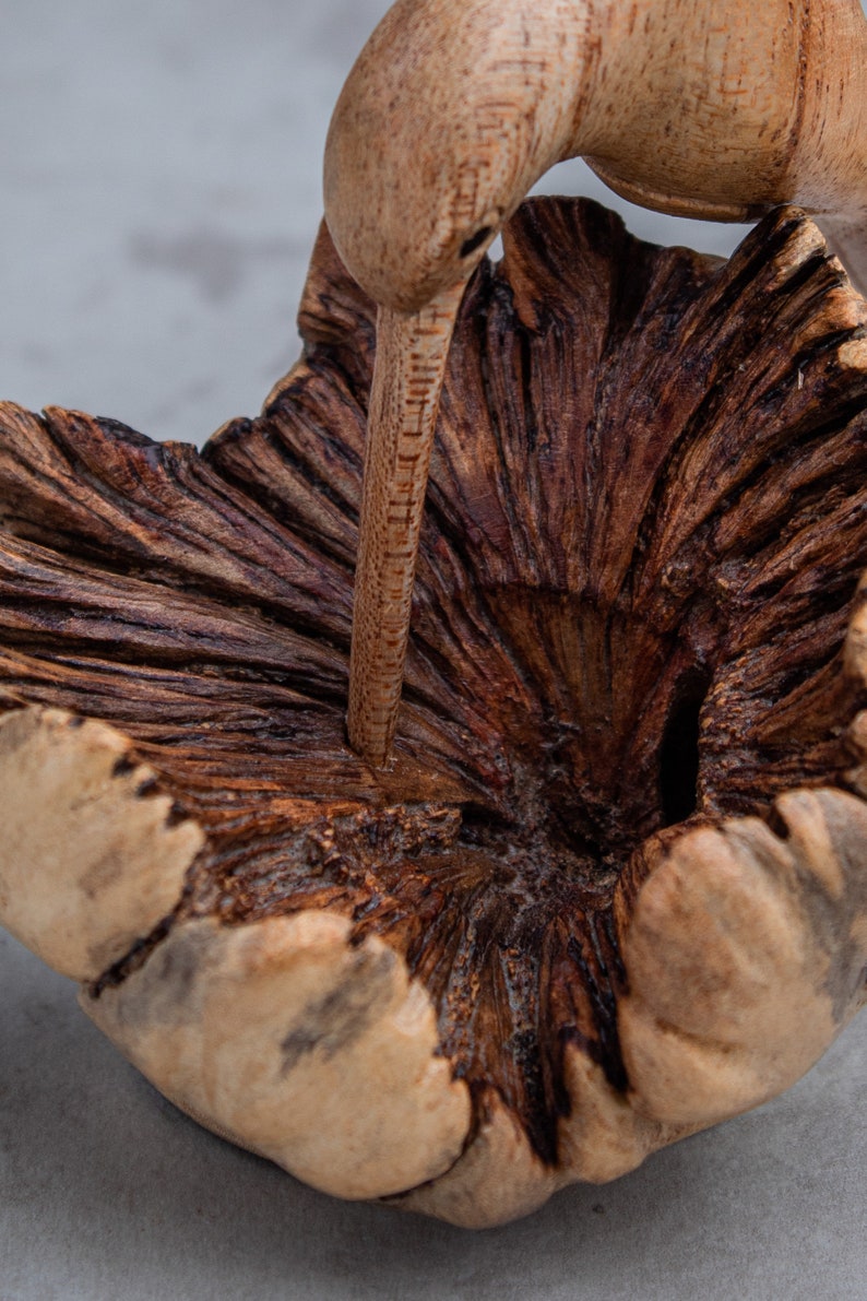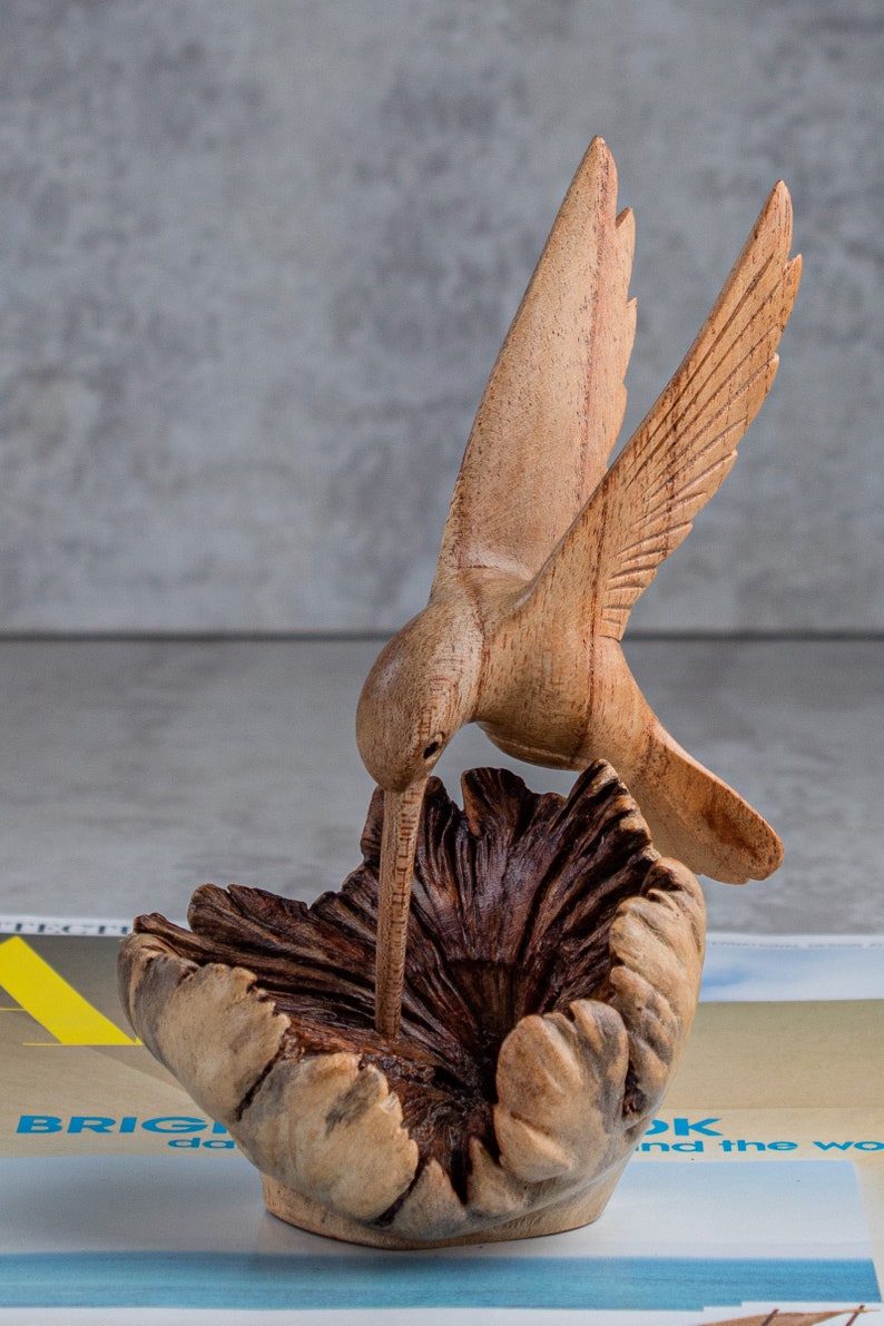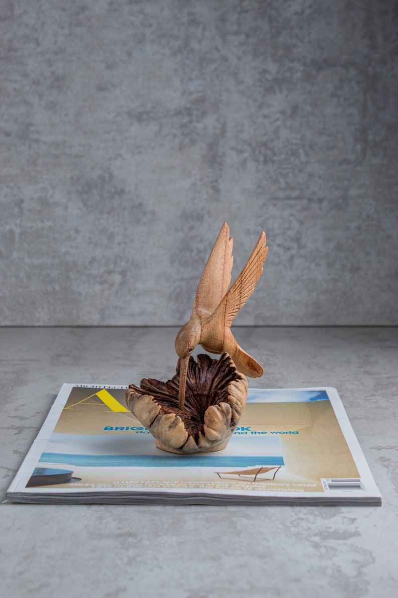 Bird Building Nest 4" Wooden Sculpture Handmade Unique Gift l Home Decoration Wood Carving Handcrafted Decorative Home Decor Figurine Accent
